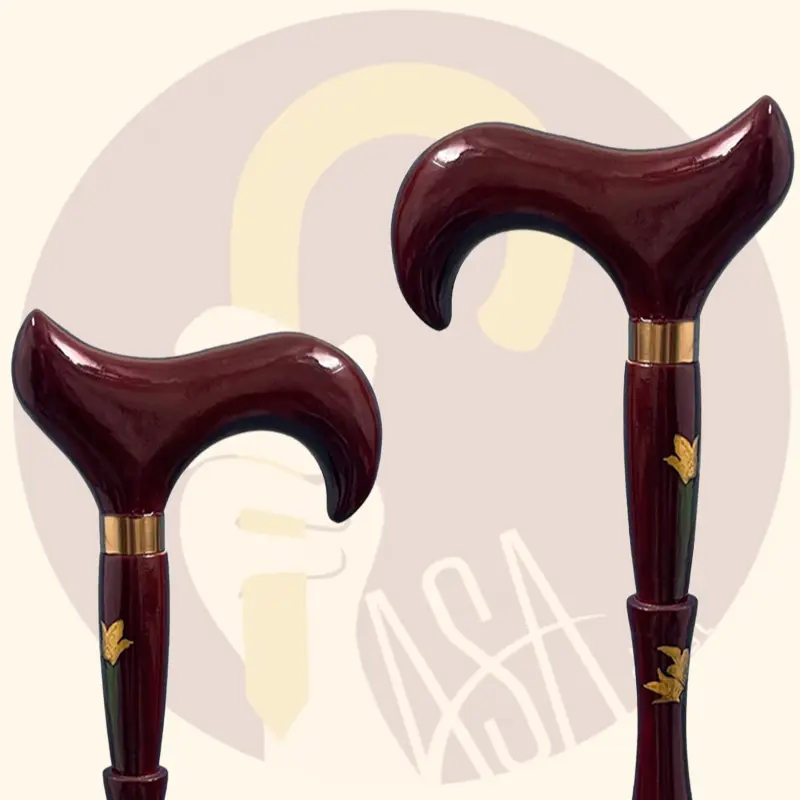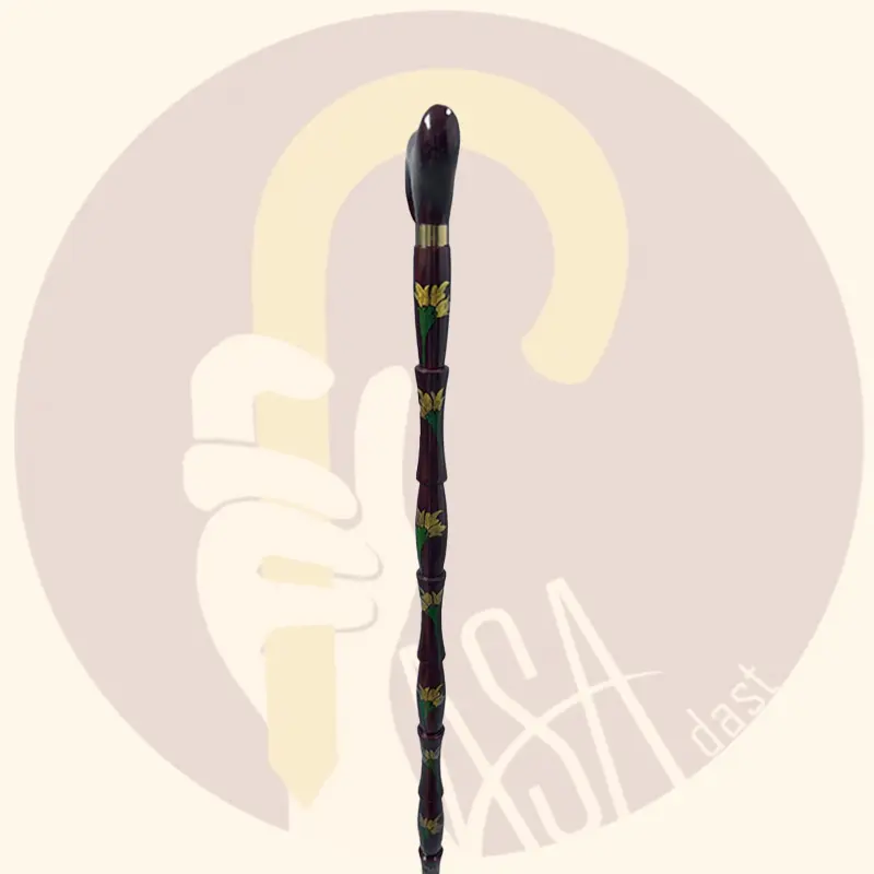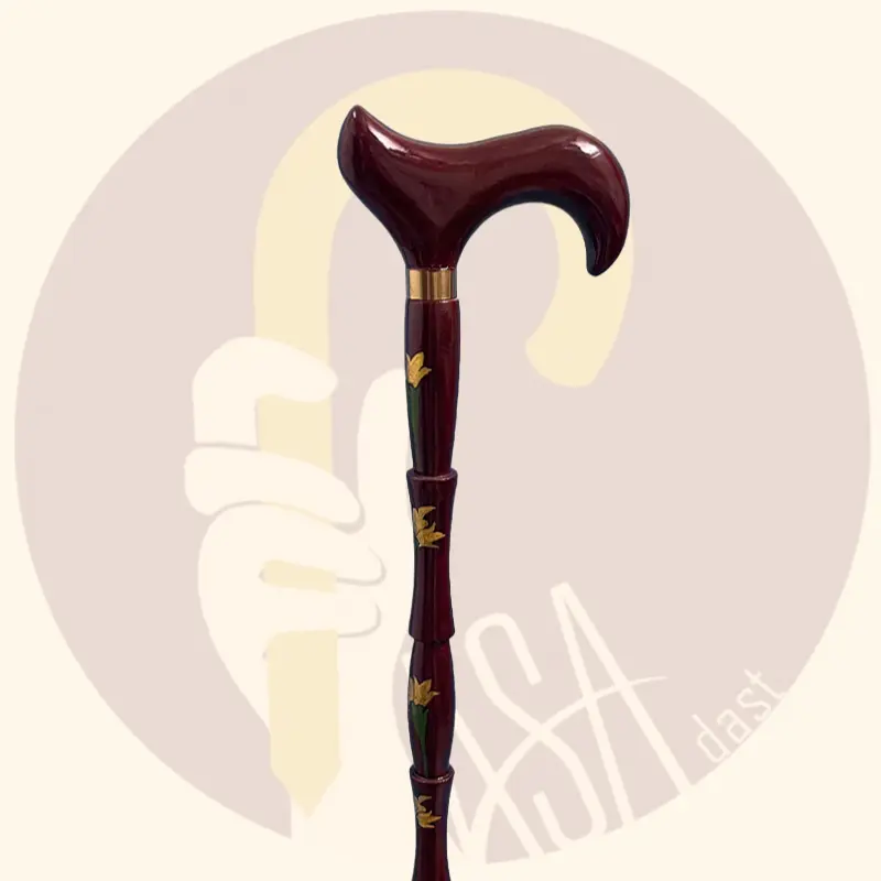 The Lilium Patterned Cane (Code 588) features intricate and elegant floral designs that add a luxurious and distinctive touch to the cane. Inspired by Lilium flowers, these patterns symbolize beauty, purity, and elevation in Iranian decorative arts. The Lilium patterned cane is not only a practical walking aid but also a cultural and artistic masterpiece, showcasing Iranian history and craftsmanship.